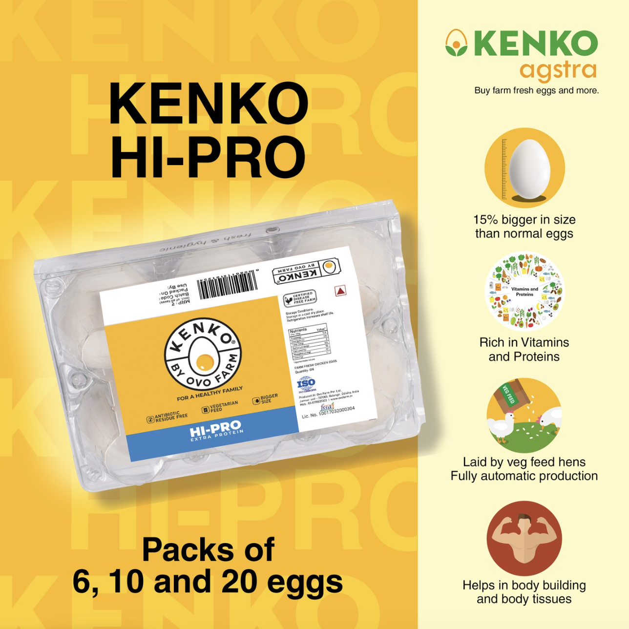 Kenko Eggs guarantees quality and safety by including an expiry date on each egg, ensuring freshness and optimal consumption. This commitment to high standards of quality and taste prioritizes customer health and satisfaction.